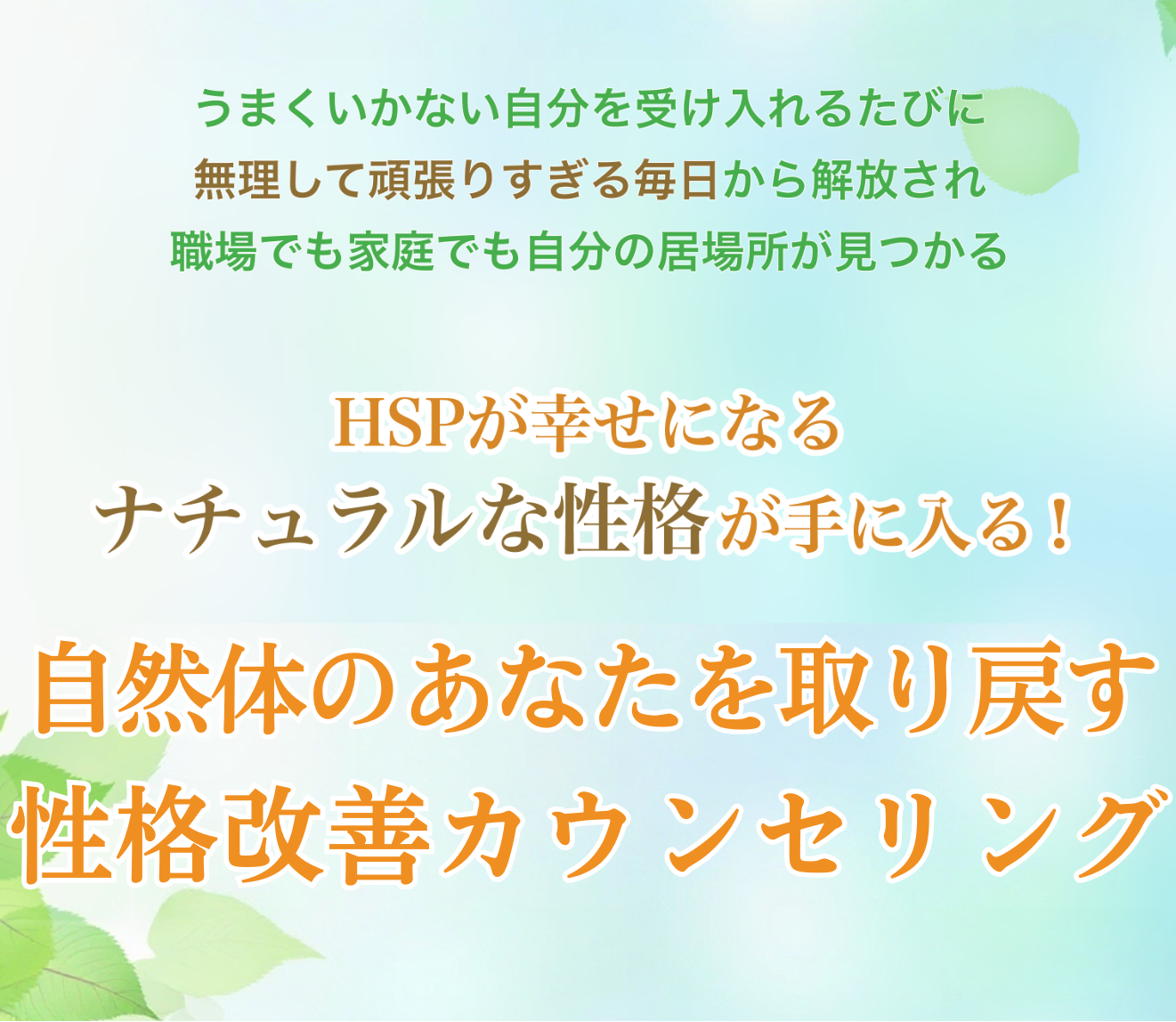 そのお手伝いがしたくて、【自然体のあなたを取り戻す性格改善カウンセリング】を提供しています。